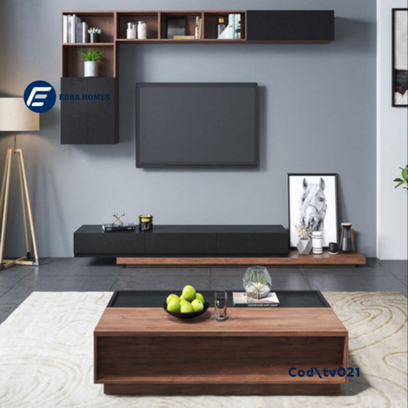 أيها الذواقة! هل تبحثون عن تلك اللمسة الجمالية التي ترتقي بصالة المعيشة الخاصة بكم؟ لا تترددوا في اختيار ترابيزه تليفزيون 16035 سم وترابيزه قهوه 5080 سم – tv021. فهي ليست مجرد قطع أثاث، بل هي قطع فنية مصنوعة من الخشب MDF الإسباني الذي يجمع بين الأناقة والمتانة.