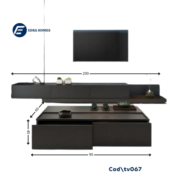 تتميز ترابيزه التليفزيون بقياسات 200 في 35 سم، مما يجعلها مثالية لجميع أنواع المساحات. تم تصميمها من خشب MDF الإسباني، الذي يضمن متانة استثنائية ومظهرًا عصريًا يناسب أي ديكور.
