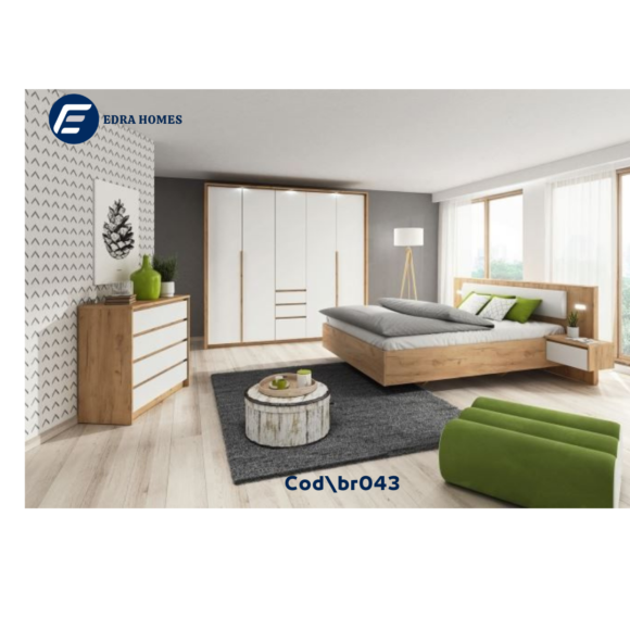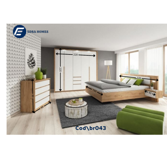 تقدم هذه الغرفة الثبات والمتانة بفضل استخدام خشب MDF الفاخر. تنتظر هذه القطع في غرفة نومك لتجعلها أكثر راحة وجمالاً، مما يمنحك شعورًا بالسعادة.