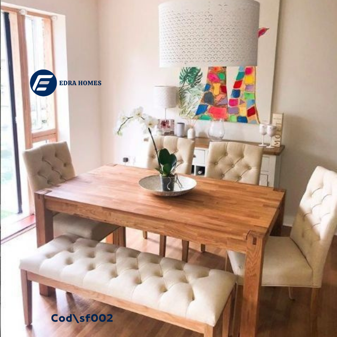 كل كرسي مصمم لتوفير أقصى درجات الراحة، مما يجعل تجربة تناول الطعام أكثر استمتاعًا. ومع البانكيت الجانبي، يمكنك إضافة لمسة من الفخامة والراحة في أي تجمع عائلي.